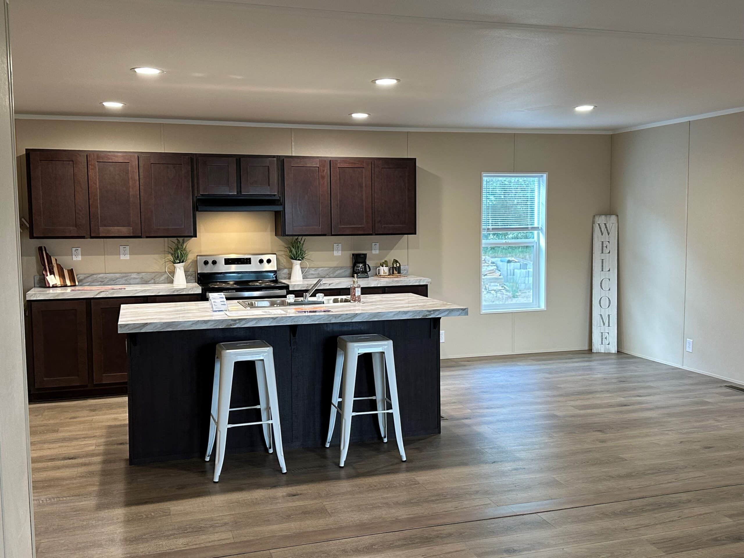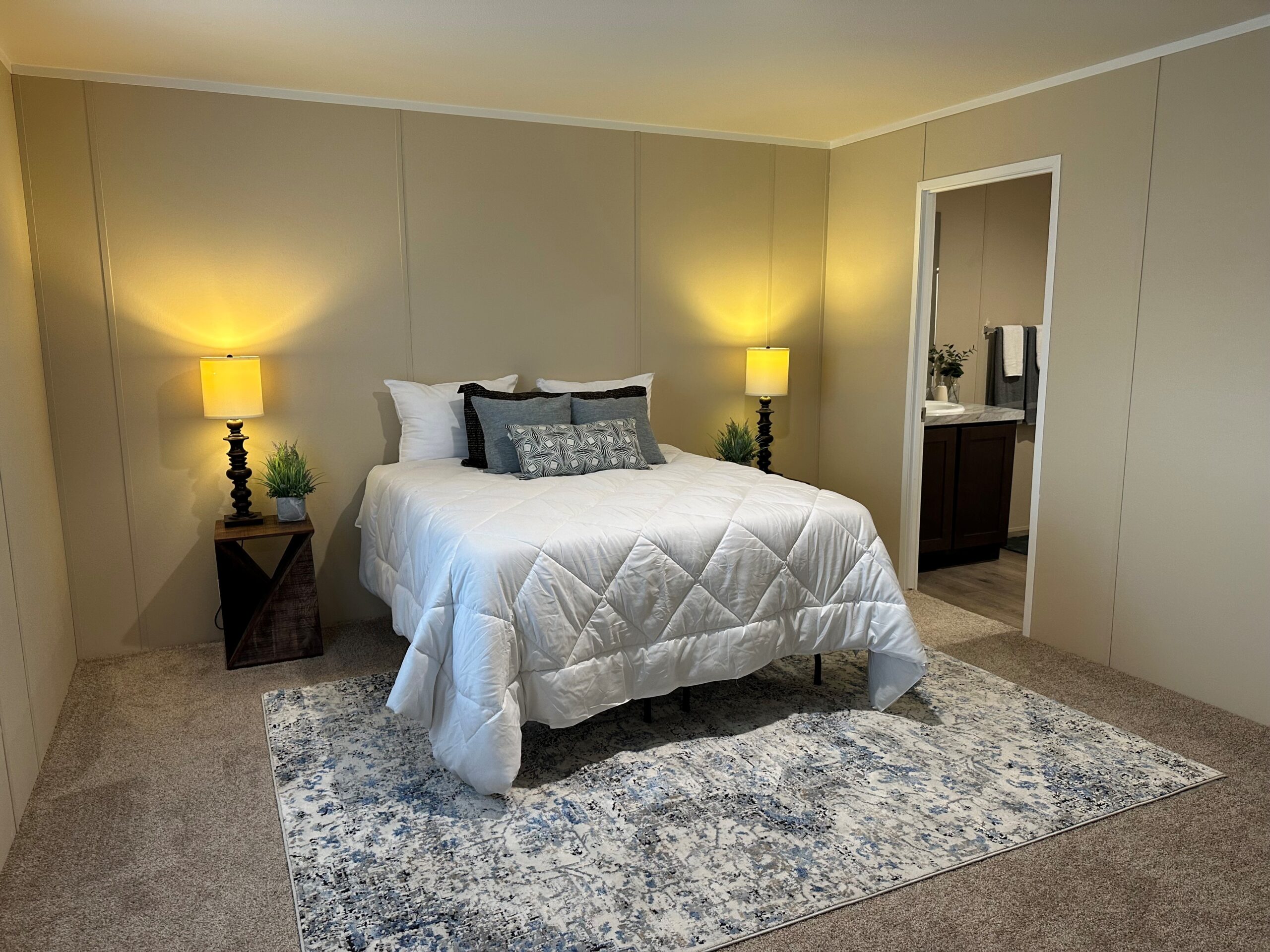Pure 28563P The Prosper – Quality crafted affordable family home with zero wasted hallway space features expansive living room opening to beautiful modern kitchen with center island bar/work station, large utility/laundry room, spacious master bedroom and ensuite bath privately located away from kingsize guest bedrooms and bath #2 at the opposite end of the floorplan, large walk-in closets in all three bedrooms.