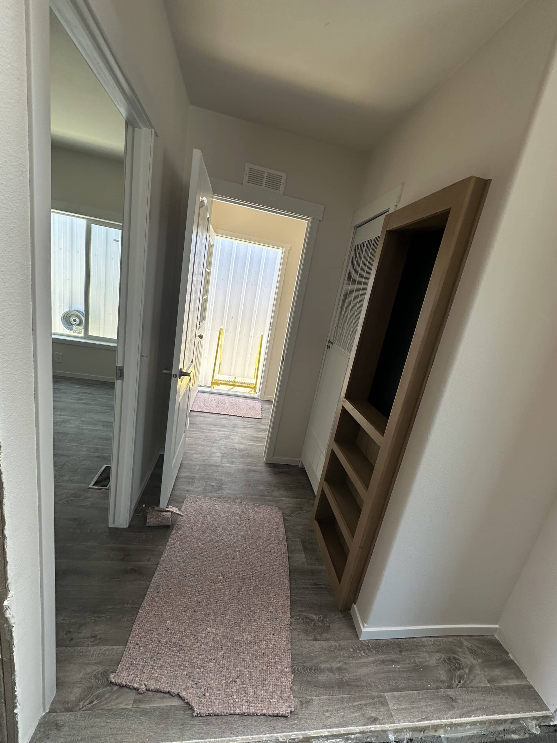 Interior Doors: 2-Panel white interior doors / Residential style mortise door hinges (3) hinges / Stick-on door stops