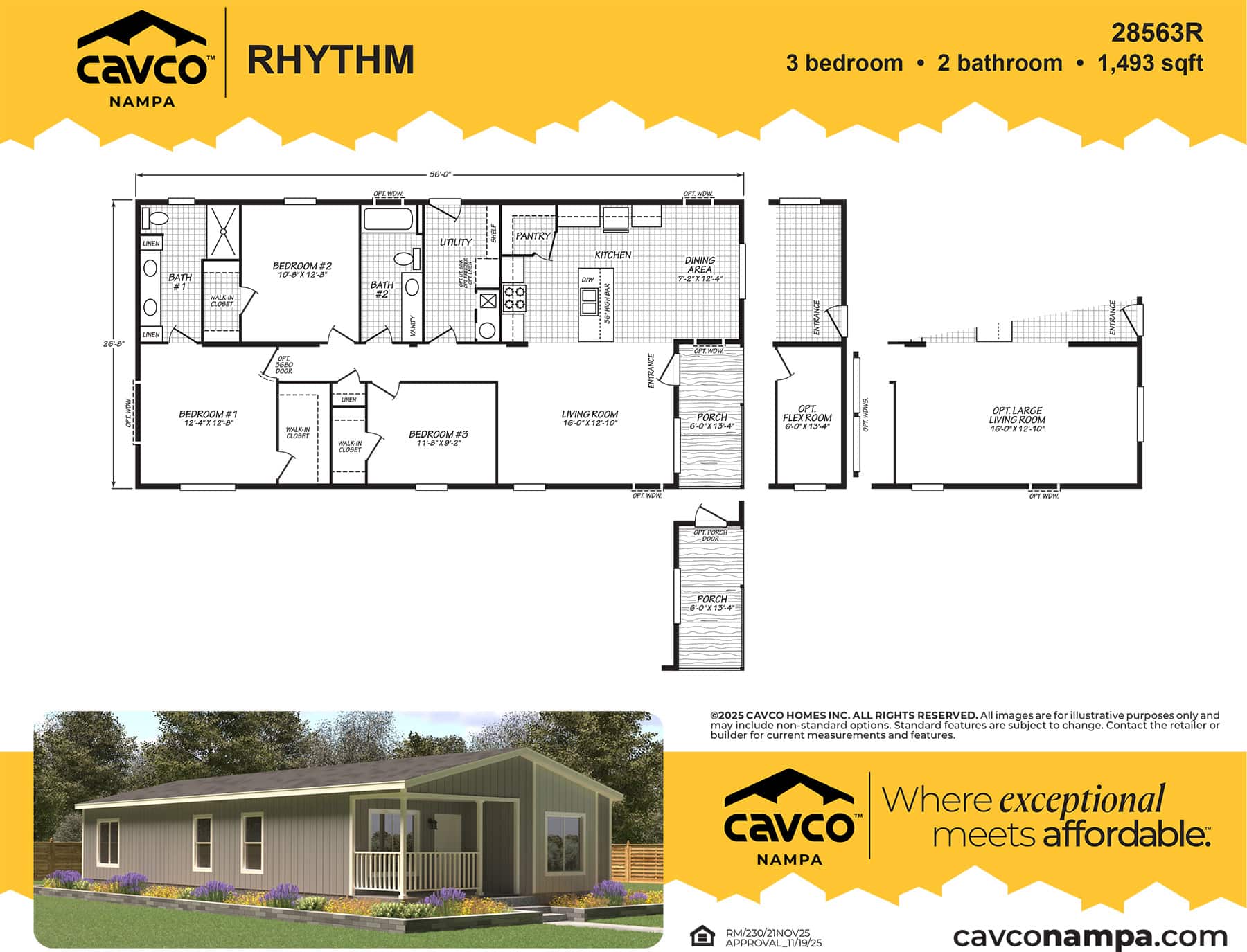 The Rhythm Series / 28563R built by Poky Homes features 3 bedrooms, 2 bathrooms, and 1,493 square feet of inviting, thoughtfully designed living space that’s made for real-life comfort. Whether you’re hosting a weekend gathering or enjoying a quiet evening at home, this layout makes it easy to do it all. The 28563R blends warmth, style, and everyday function into a home that feels just right—a welcoming place where lasting memories are ready to be made.